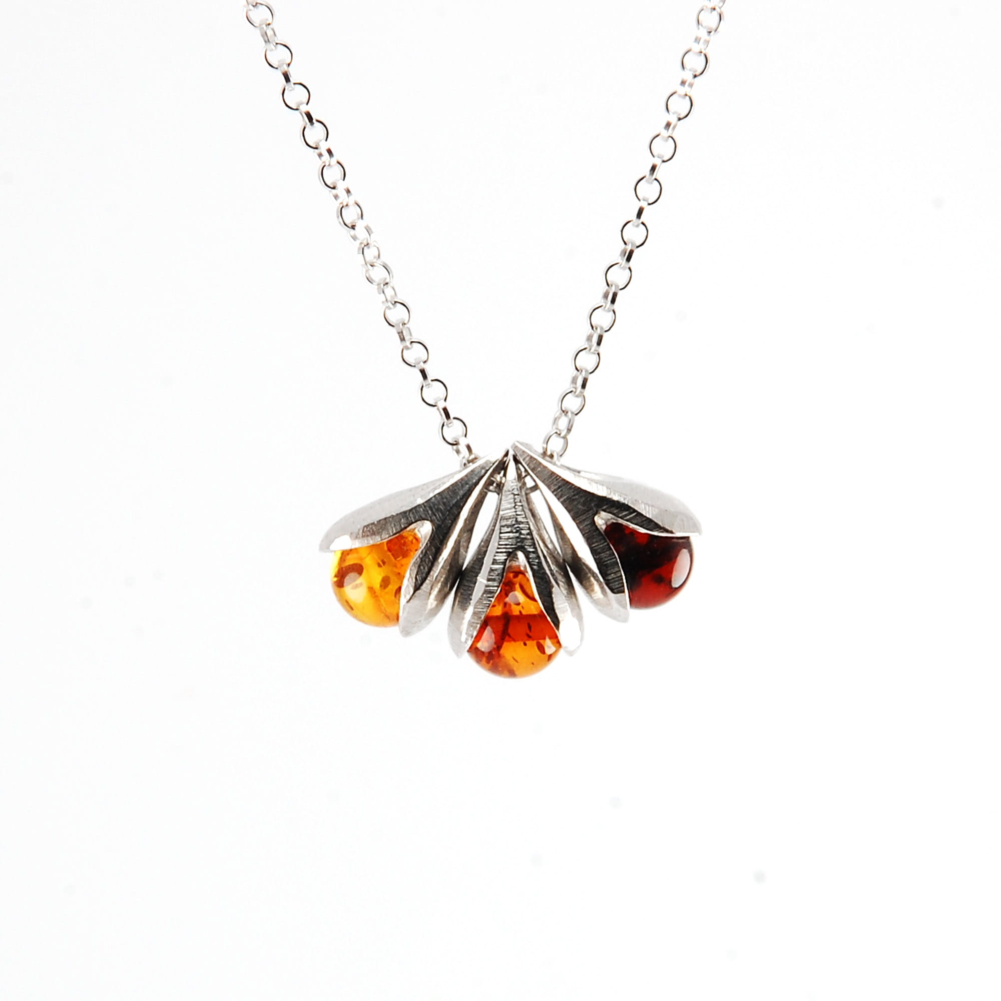 LILY OF THE VALLEY necklace is made from mate finish faceted sterling silver 925 with natural polished cherry amber. Thanks to a gentle rhodium plating, the silver does not get darker. Rose gold plated, 2 micron thick layer, additionally protected with a nano coating.
