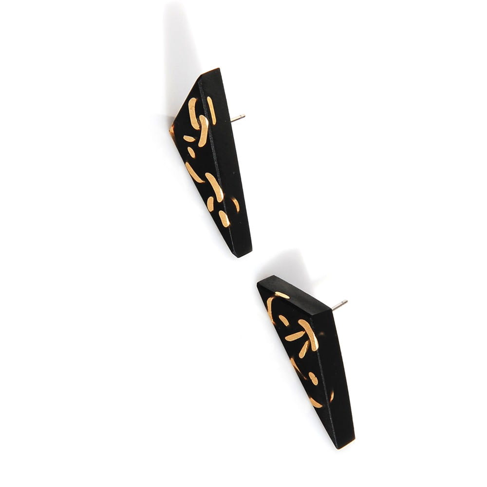 Unique earrings are made from recycled brass and black resin. Size: 7mm x 30mm, 7mm height, the pin and plugs are made from surgical steel (antiallergic).