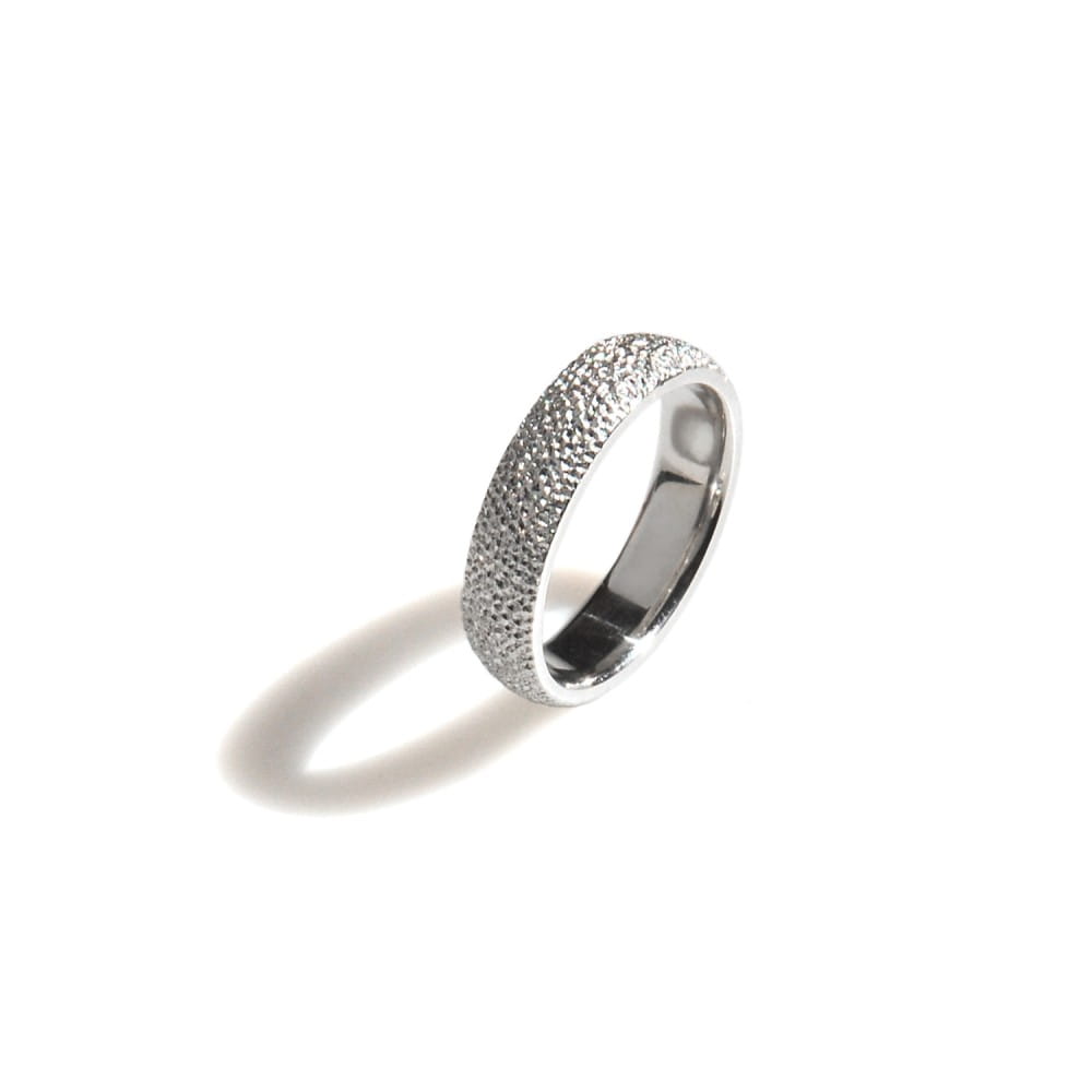 The surface of the Diamond band reflects and diffuses the light in a unique way. It was carved at different angles and on different depths, thus creating milimetric recesses. Thanks to a gentle rhodium coating, the silver does not get darker. The shown examples in photos have width of: 6mm or 3mm; thickness: 2,5-3mm.