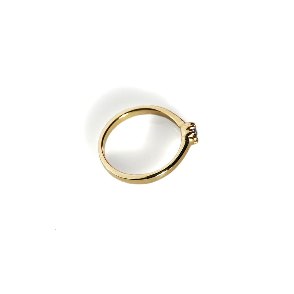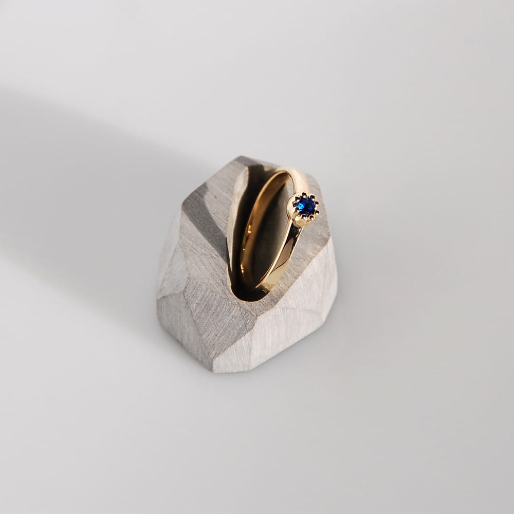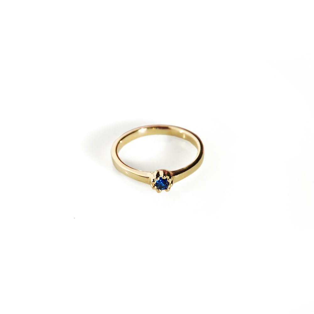 Minimalist and modern gold ring with natural sapphire. A diamond cut stone with a diameter of 3mm was set in 14K, 585 gold. It is possible to bind other precious stones of any size on special order.