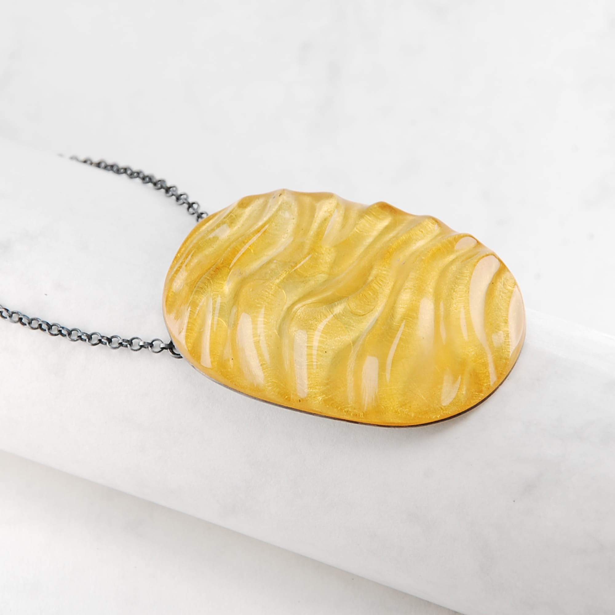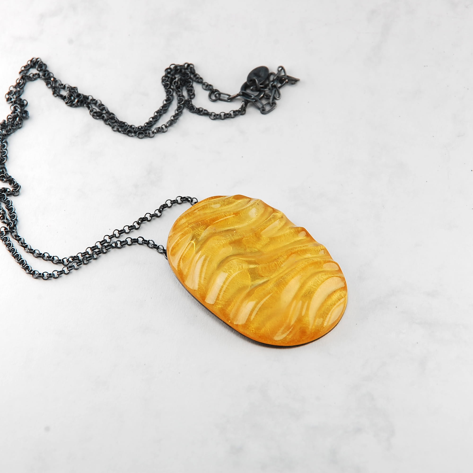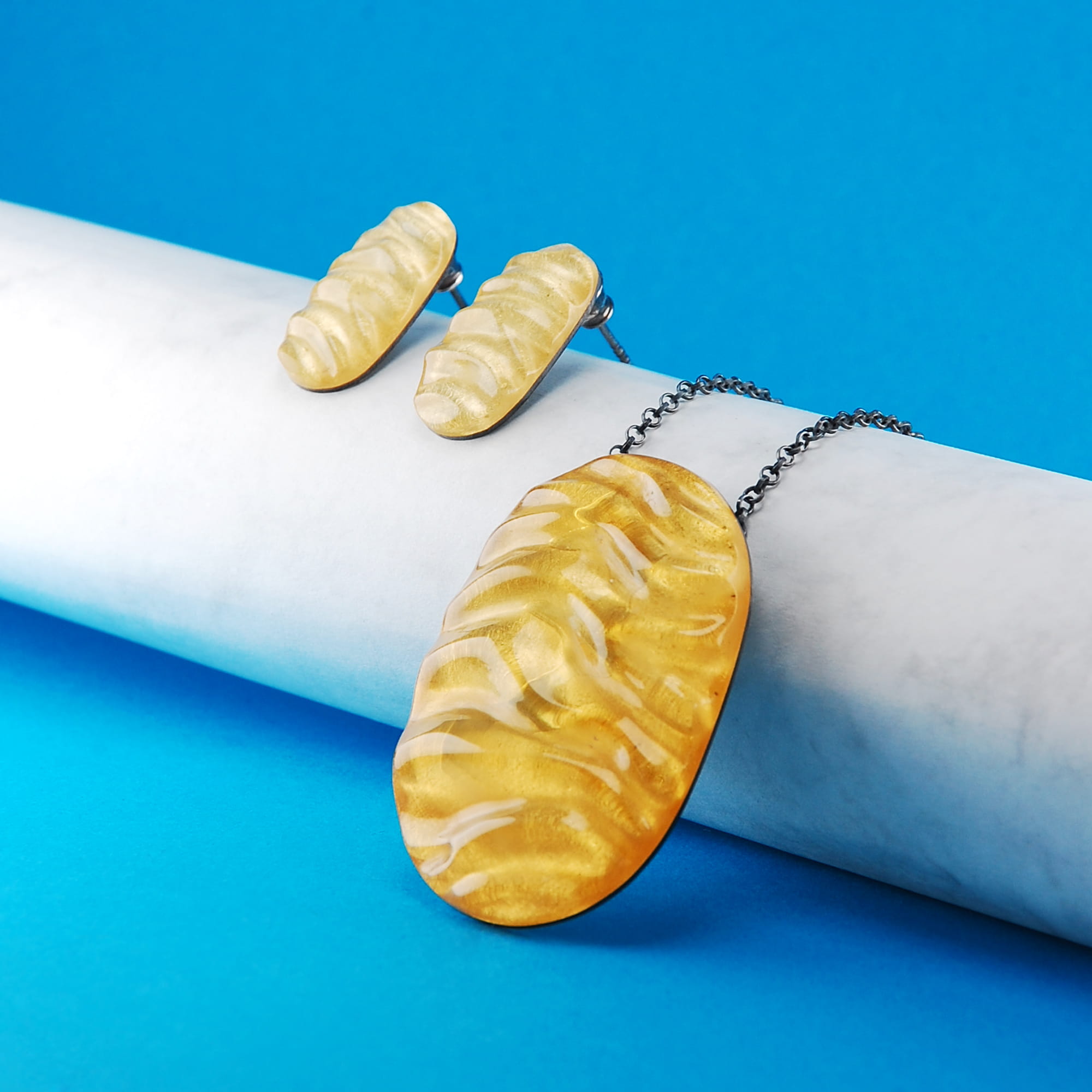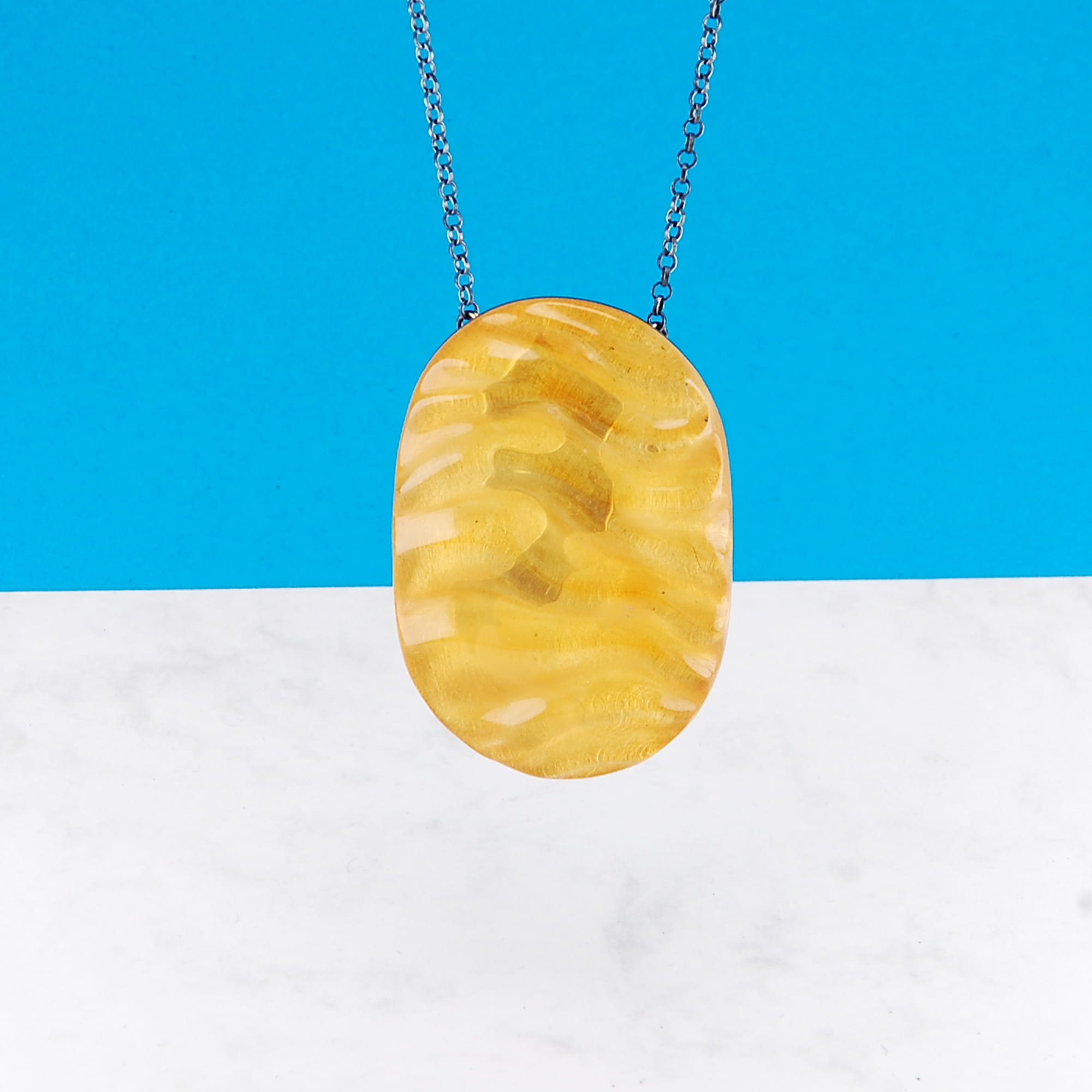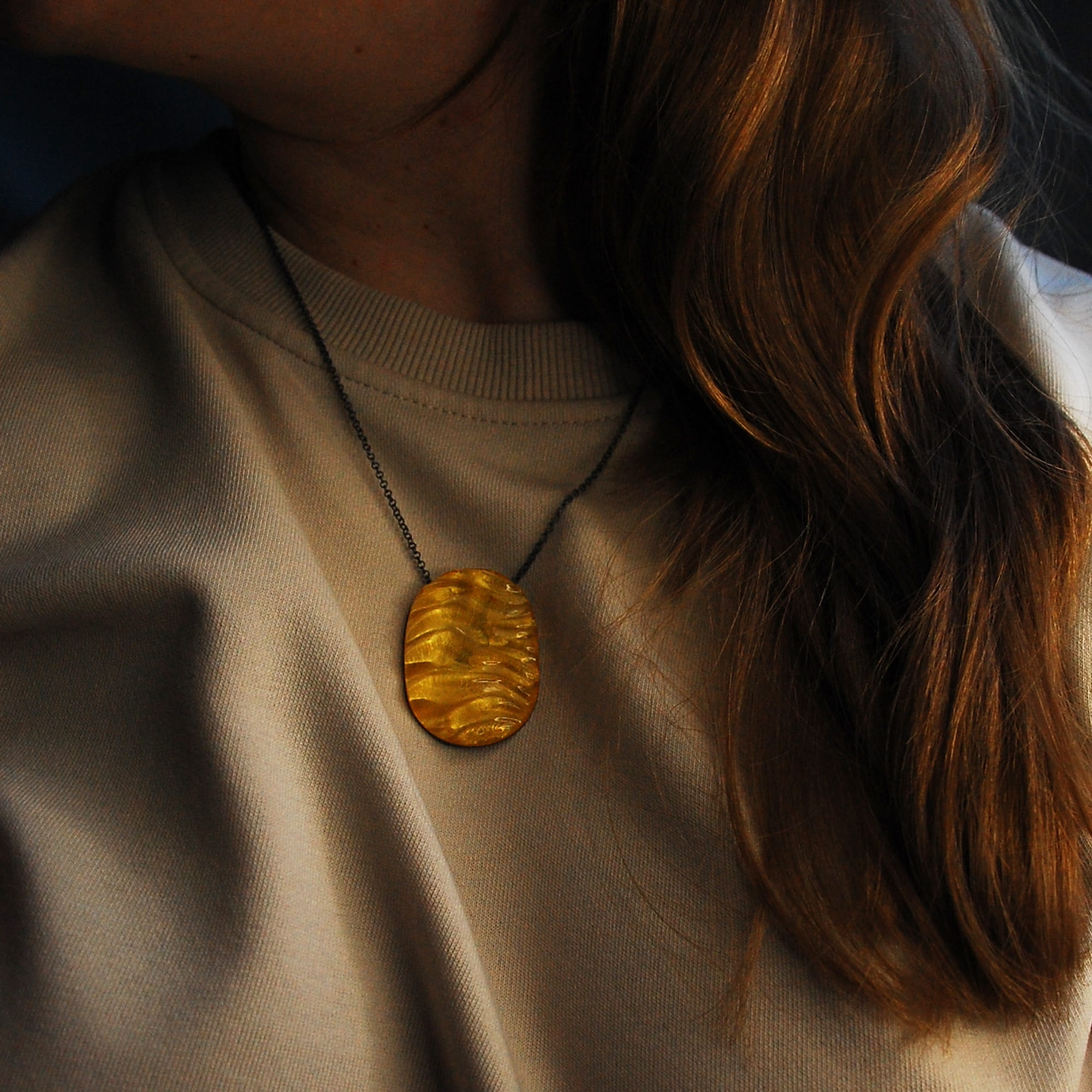 TAFLA to kolekcja, w której bursztyn jest na pierwszym planie: liczy się duża powierzchnia, refleksy i możliwość zajrzenia do wnętrza bryłki przez gładko wypolerowaną taflę. W wersjach z cytrynowym bursztynem światło dodatkowo podbija srebrna blaszka na spodzie, a naturalne odbicia kory tworzą na powierzchni kamienia niepowtarzalny rysunek. To propozycja dla osób, które chcą, by bursztyn „grał rolę główną” i był widoczny z daleka, ale wciąż w nowoczesnym, minimalistycznym ujęciu.